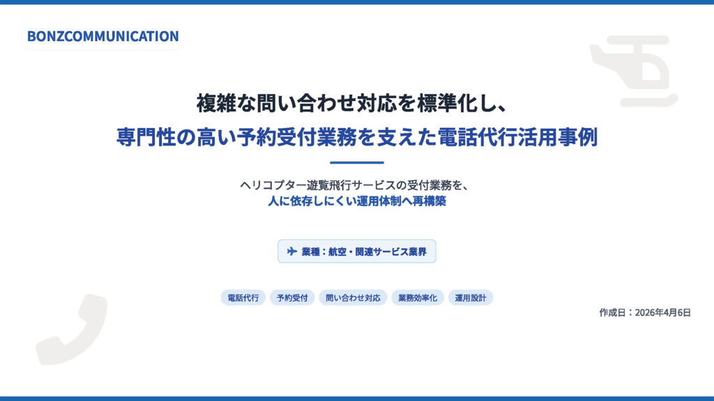 複雑な予約受付をどう標準化する?ヘリコプター遊覧飛行サービスの受付業務を再設計し、属人的な運用から脱却した事例