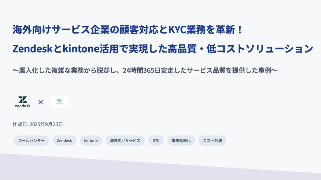 本事例では、海外サービス企業が抱えていた顧客対応とKYC業務の課題を、Zendeskとkintoneの活用で解決しました。